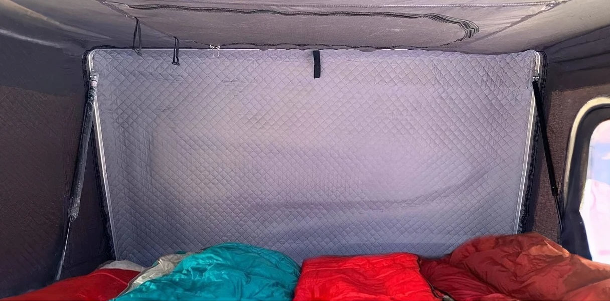 you can have a full size king or queen bed while only taking up half of your space. It's perfect for bringing your whole family of up to 4 , and it fits most of vehicles